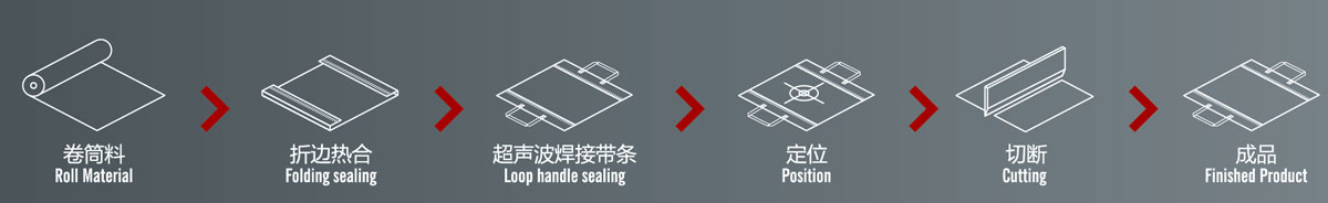 7.Process:feeding material--mouth folding---ultrasonic welding the handle--cutting--counting--collection