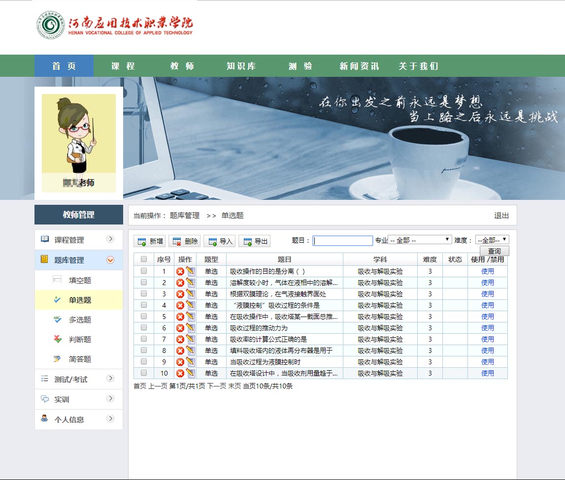 系統(tǒng)的主要功能可以理解為在線“學(xué)習(xí)與測(cè)評(píng)”。它的主要功能也集中在兩點(diǎn),一是學(xué)習(xí)培訓(xùn);二是考試。在學(xué)習(xí)培訓(xùn)部分,首先是老師編排課程,然后學(xué)生選擇相應(yīng)課程學(xué)習(xí)。考試部分,則由老師錄入試題,隨機(jī)生成試卷,學(xué)生參加考試。通過(guò)記錄學(xué)員在線上參加的理論學(xué)習(xí)、考試、錯(cuò)題回顧等情況,實(shí)現(xiàn)對(duì)學(xué)員學(xué)習(xí)情況的全程跟蹤管理和對(duì)學(xué)生培訓(xùn)需求的全面掌握。