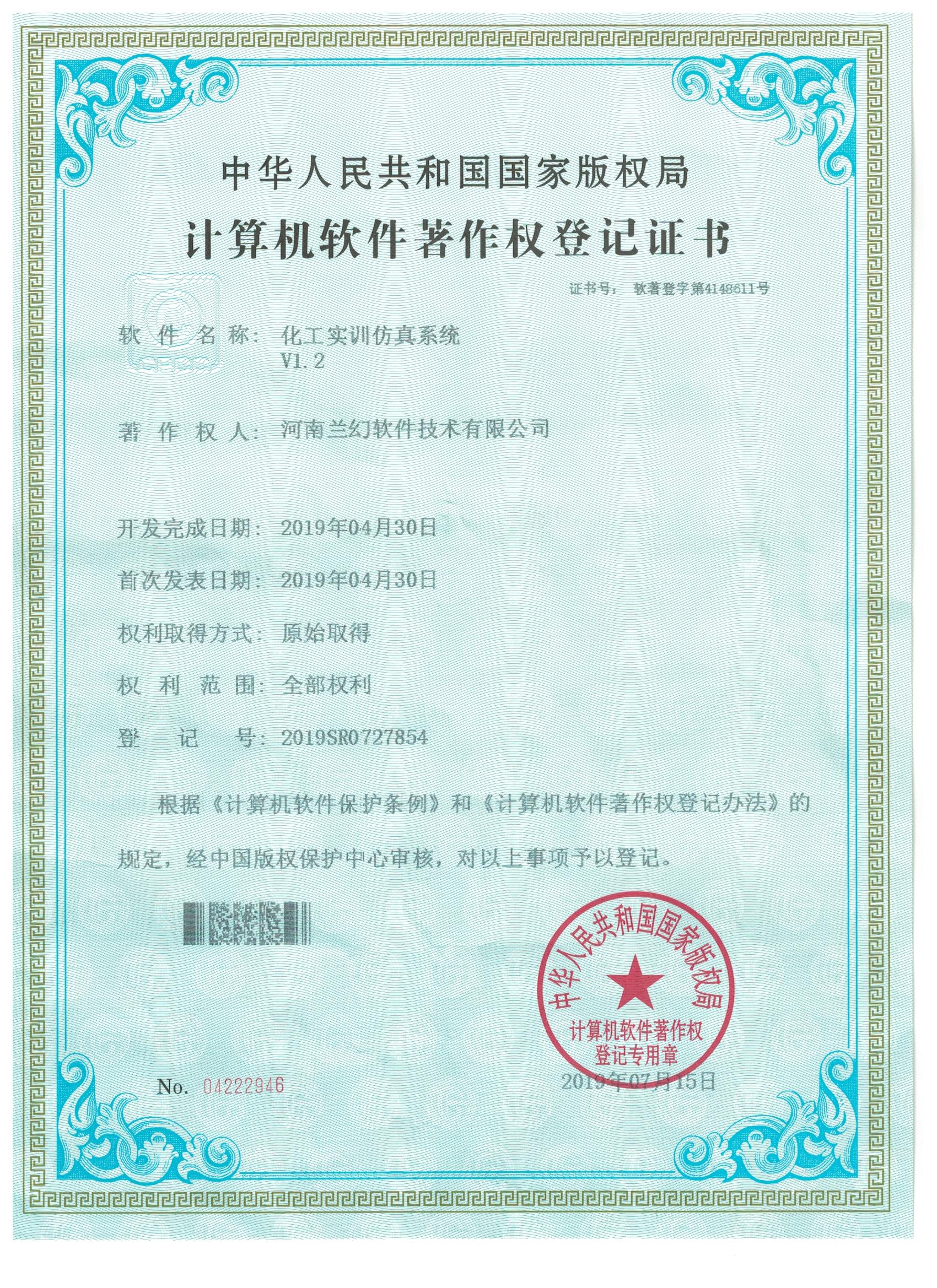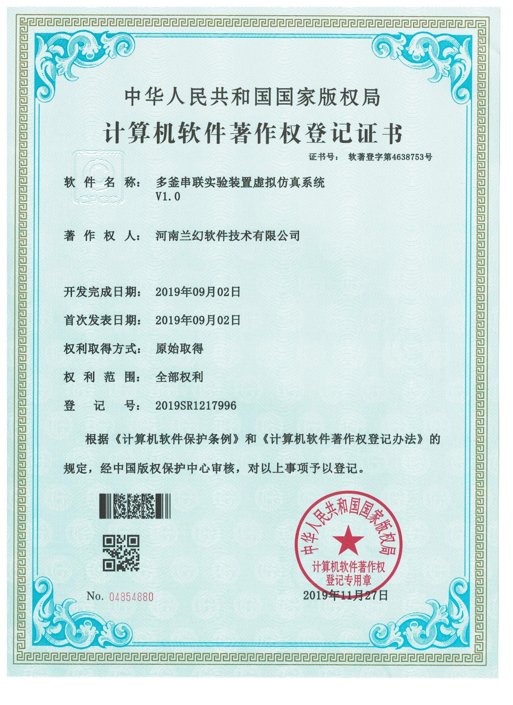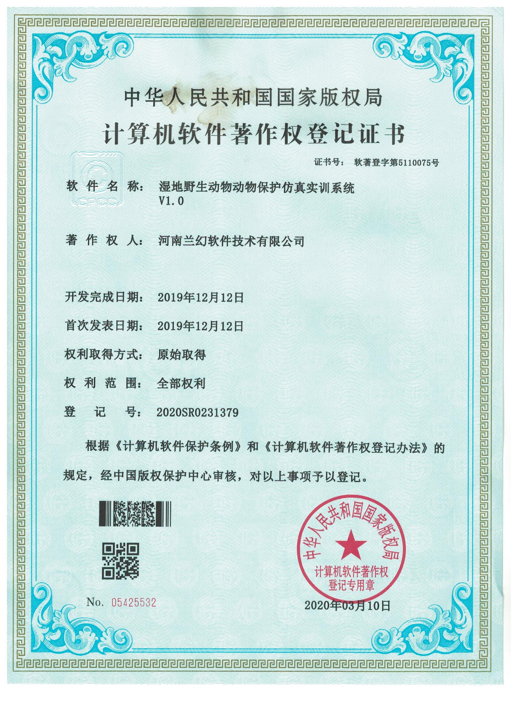 濕地野生動物保護仿真實訓系統著作權證書   雙套管傳熱實驗裝置虛擬仿真系統著作權證書   多釜串聯實驗裝置虛擬仿真系統著作權證書