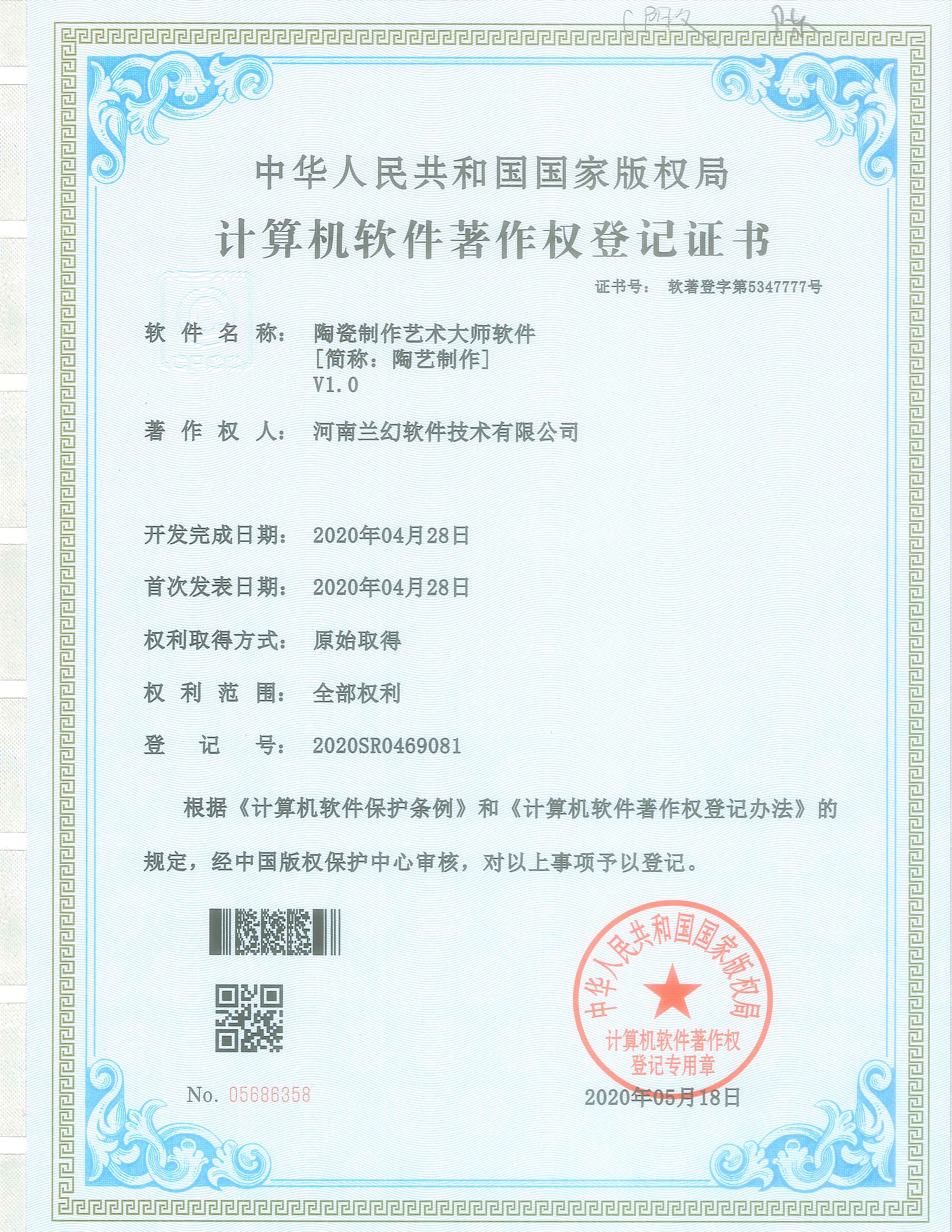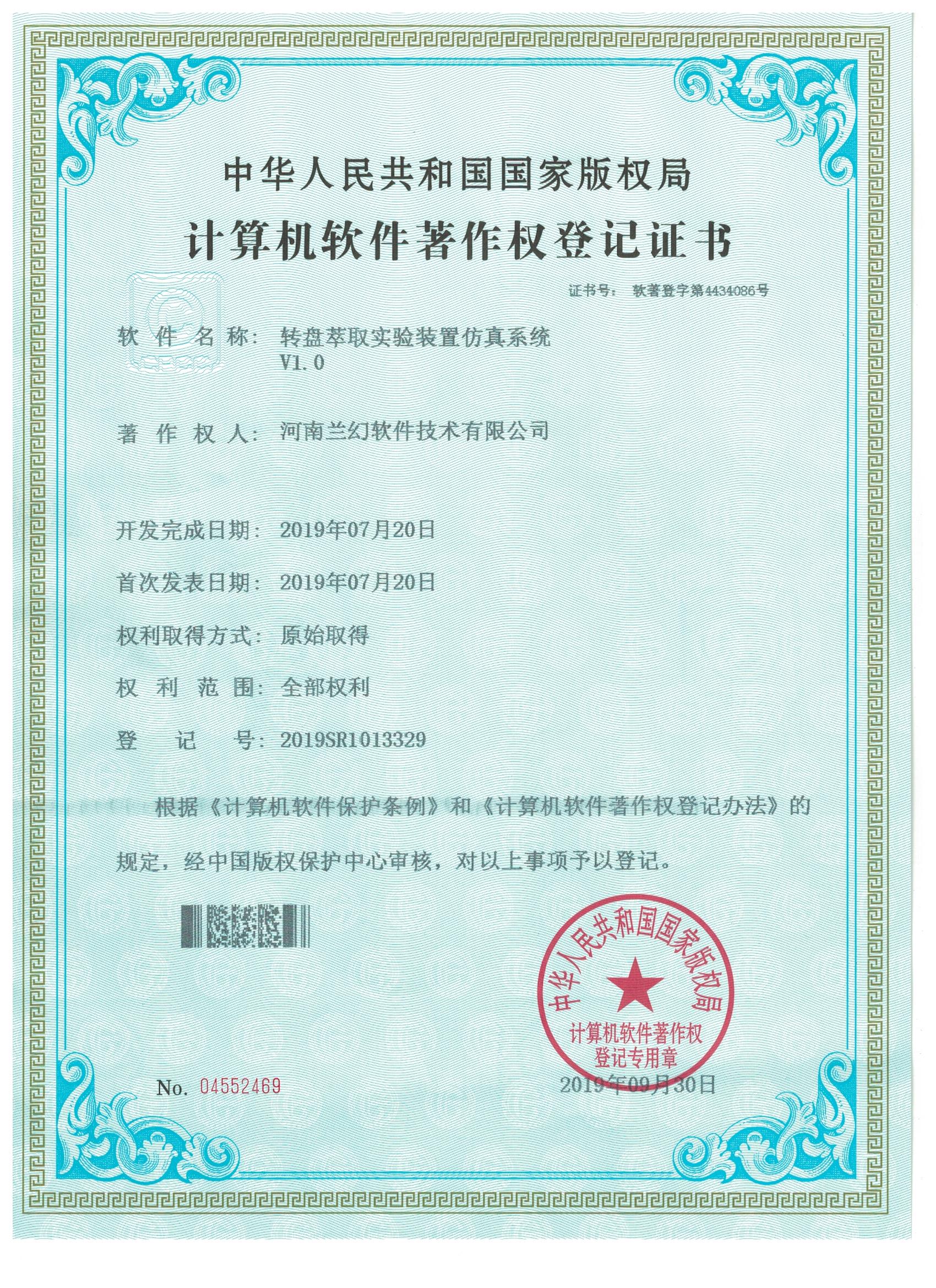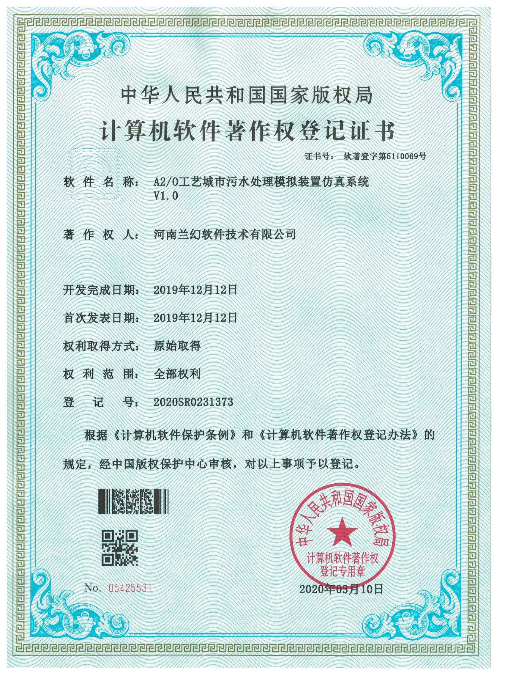 A2/0工藝城市污水處理模擬裝置仿真系統     轉盤萃取實驗裝置仿真系統著作權證書          陶瓷制作藝術大師軟件著作權證書